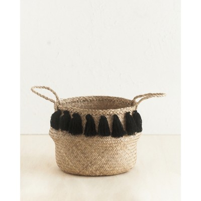 Slickblue Versatile Seagrass Belly Storage Basket, Handwoven with Black Tassels, 2 Size Options