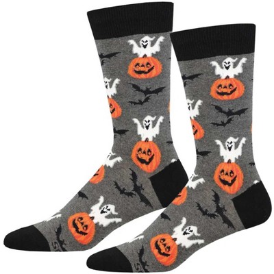 Socksmith 20.0 Inch Spooky Jack-O-Lanterns Halloween Socks (1 Pair) , Charcoal Heather Bats Ghosts (1PC)