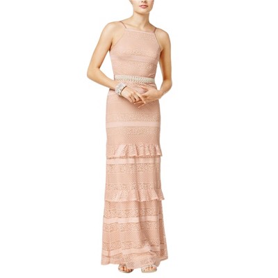 Speechless Womens Metallic Embroidered Evening Gown Dress