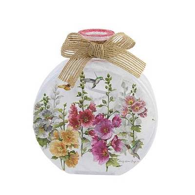 Stony Creek 4.5 Inch Hollyhocks Lit Round Jar W/Bow Lighted Glass Accent , Electric Flowers Mother's Day (1PC)