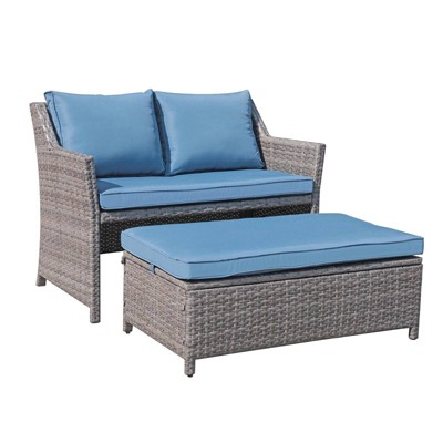 Sunsitt 2pc Wicker Outdoor Patio Wicker Loveseat and Coffee Table Set with Built-in Storage Bin