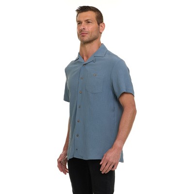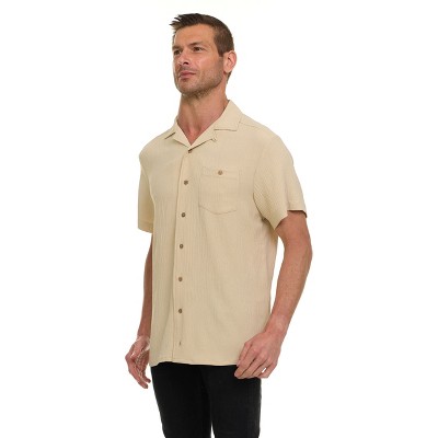 Super Triple Goose Men’s Textured Printed Camp Collar Shirt – Vintage-Inspired Stretch Shirt with Moisture Wicking & Easy Care