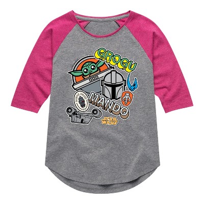 Girls' - The Mandalorian - Mando Grogu Stickers Shirt Tail Raglan Graphic T-shirt