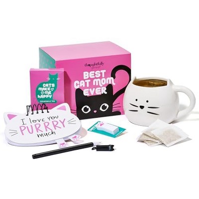 Thoughtfully Gourmet, Cat Mom Gift Set, Includes Cat-Shaped Ceramic Mug, 4 Chamomile Tea Bags, Cat-Shaped Notebook & Pen, and Paw-Shaped Sticky Notes