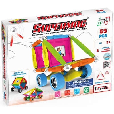 Tinamiri Supermag - Wheels 55 - Magnetic Building Set, Educational construction fun, 55 piece set, Magnet Toys, 0661