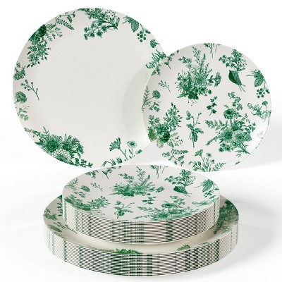 Trendables Plastic Disposable Plate Set 20 x 8" and 20 x 10" Green and Ivory Verdure Disposable Wedding Plate Set