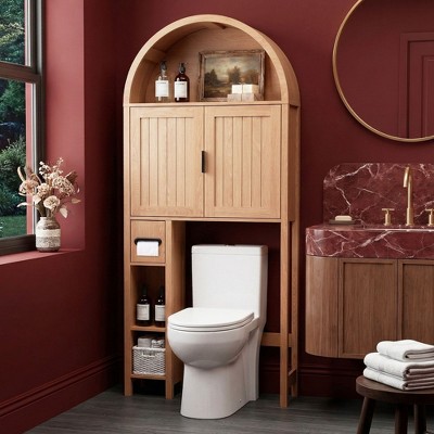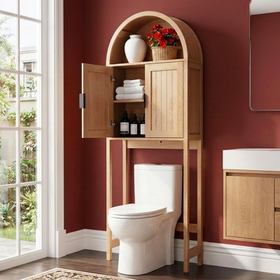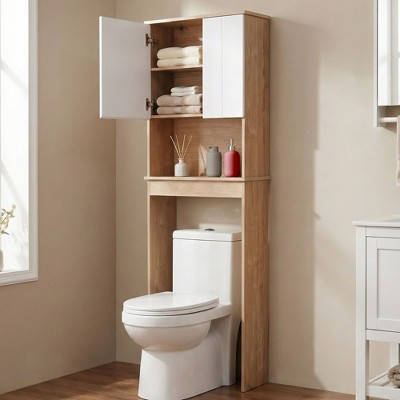 VANIRROR Bathroom Over Toilet Storage Cabinet with Double Doors, Space-Saving Behind Toilet Shelf for Most Standard Toilets, 71in H