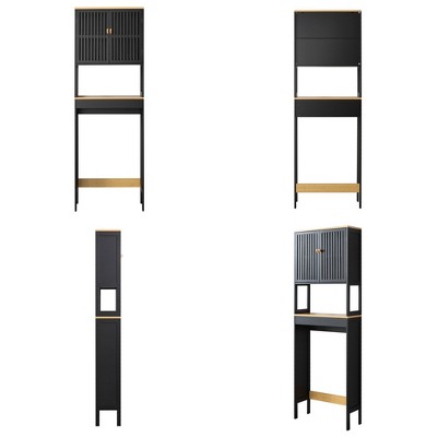 VANIRROR 70in H Black & Bamboo Over Toilet Storage with Breathable Doors & Ergonomic Pull