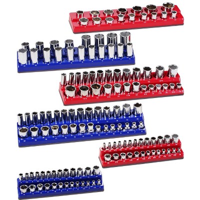 VEVOR Magnetic Socket Organizer Set, 6PCS Socket Holder, 1/4'', 3/8'' & 1/2'' Metric SAE Socket Trays with Clear Labels, Hold up to 143PCS Standard