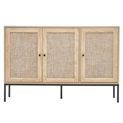 VEVOR Rattan Cabinet, Rattan Storage Cabinet with 3 Magnetic Doors and Adjustable Shelves, Sideboard Buffet Cabinet for Hallway, Entryway
