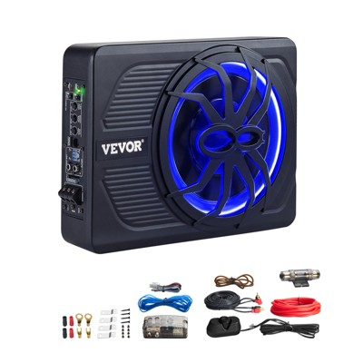 VEVOR 10" 440W Underseat Car Subwoofer, Slim Powered Car Subwoofers with Blue Ambient Light, Low Profile Audio Sub Under the Seat, Black