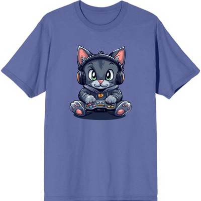 Focused Gamer Cat Adult Crew Neck Short Sleeve Tee