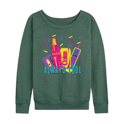 Women's - Coca-Cola - 90's Retro Style Lightweight French Terry Wide Neck Long Sleeve Graphic Shirt