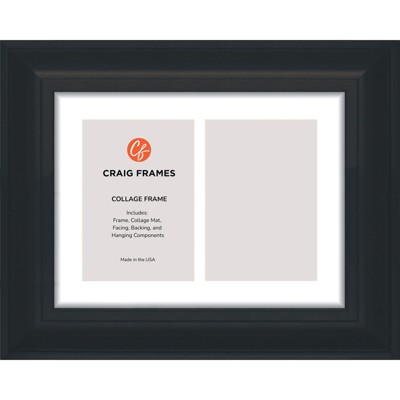 Craig Frames 11x14 Inch Collage Picture Frame, Satin Black, Upscale, Glass Facing and Sawtooth Hanger Included, (2) 5x7 Photos