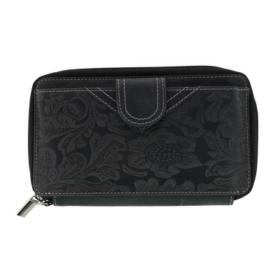 CTM Women's Embossed Floral Tooled Leather Wristlet