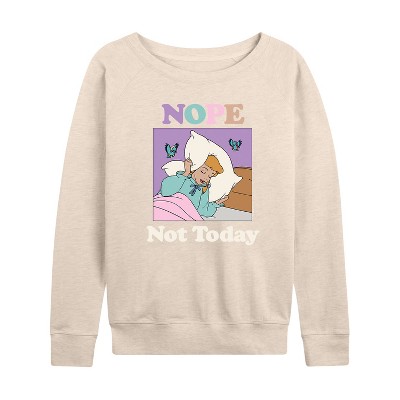 Women's - Disney Princess - Aurora Sleeping Beauty Nope Not Today Lightweight French Terry Wide Neck Long Sleeve Graphic Shirt
