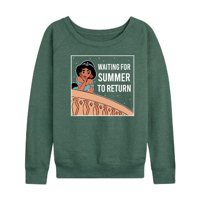 Women's - Disney Princess - Waiting For Summer Lightweight French Terry Wide Neck Long Sleeve Graphic Shirt