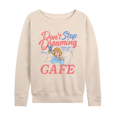 Women's - Disney Princess - Don't Stop Dreaming Cafe Lightweight French Terry Wide Neck Long Sleeve Graphic Shirt