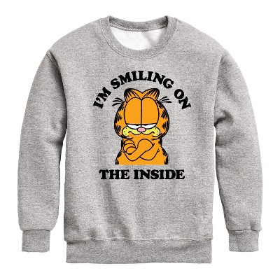 Boys' - Garfield - Smiling On The Inside Graphic Long Sleeve Fleece Sweatshirt