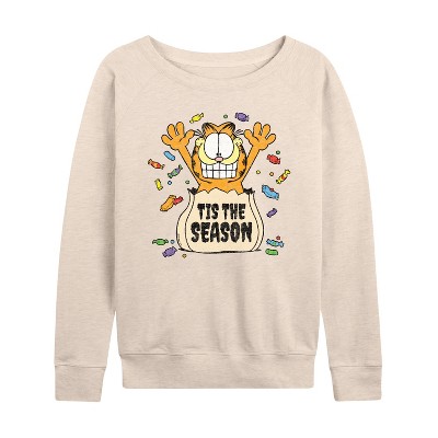 Women's - Garfield - Tis The Reason Lightweight French Terry Wide Neck Long Sleeve Graphic Shirt