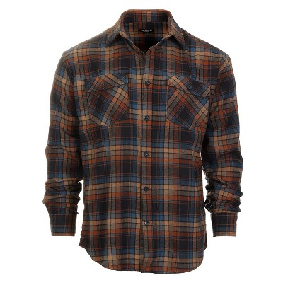 Gioberti Men's Long Sleeve Brushed Flannel Plaid Checkered Shirt with Corduroy Contrast