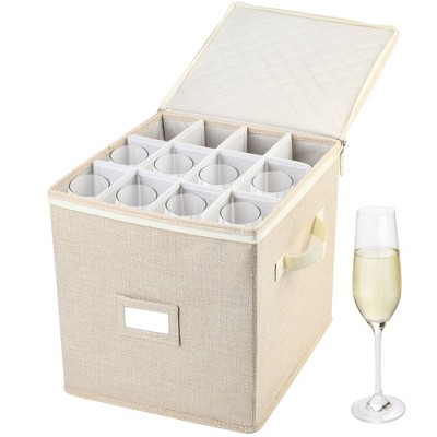 LotFancy Stemware Storage Container, Wine Glass Storage Box with Dividers & Handles,Quilted linen
