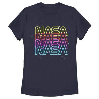 Women's NASA Neon Rainbow Repeat Text Logo T-Shirt