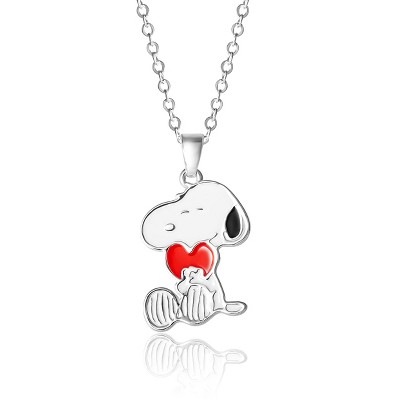 Peanuts Snoopy Silver Plated Holding Heart Pendant, 16+2" Chain