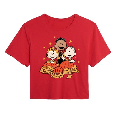 Women's - Peanuts - Halloween Pumpkin Pals Charlie Snoopy Sally Linus Oversized Graphic T-Shirt