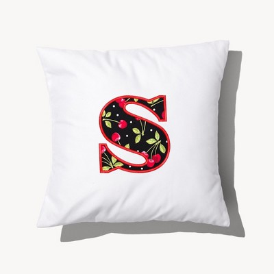 Personalization Mall Cherry Pop Initial Embroidered Applique Throw Pillow