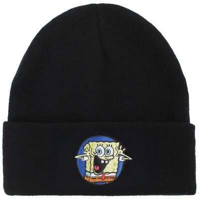 Spongebob Square Pants Embroidered Circle Character Patch On Black Cuff Beanie