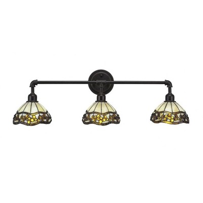 Toltec Lighting Vintage 3 - Light Vanity in Dark Granite with 7'' Roman Jewel Art Glass Shade