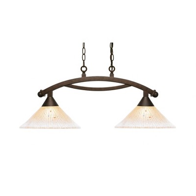 Toltec Lighting Bow 2 - Light Island Pendant Light in Bronze with 12" Amber Crystal Shade