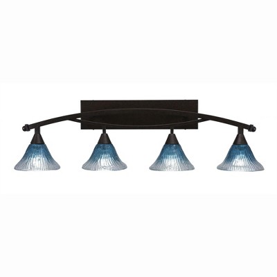 Toltec Lighting Bow 4 - Light Vanity in Bronze with 7" Teal Crystal Shade