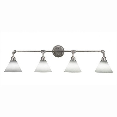 Toltec Lighting Vintage 4 - Light Vanity in Aged Silver with 7" White Muslin Shade