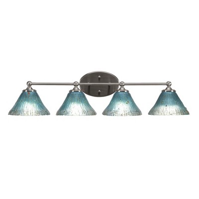 Toltec Lighting Capri 4 - Light Vanity in Brushed Nickel with 7" Teal Crystal Shade