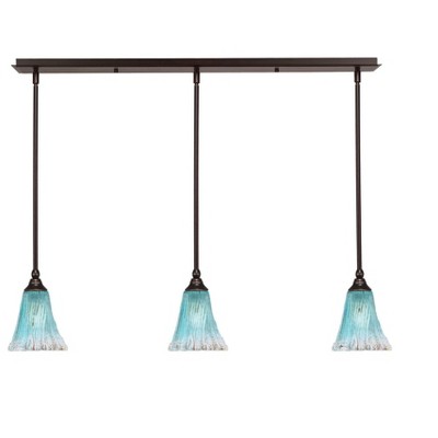 Toltec Lighting Any 3 - Light Chandelier in Dark Granite with 5.5" Fluted Teal Crystal Shade