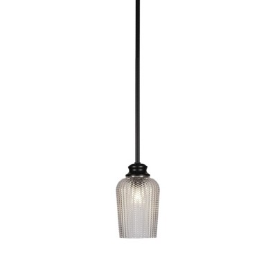 Toltec Lighting Cordova 1 - Light Pendant in Matte Black with 5" Clear Textured Shade