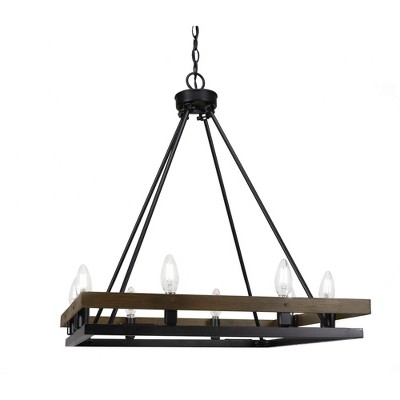 Toltec Lighting Belmont 8 - Light Chandelier in Matte Black/Wood Grain