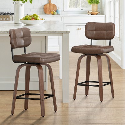 UNISOAR 26" Counter Height Swivel Bar Stools,PU Leather & Bentwood Back Bar Stools for Kitchen