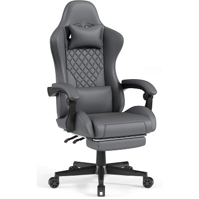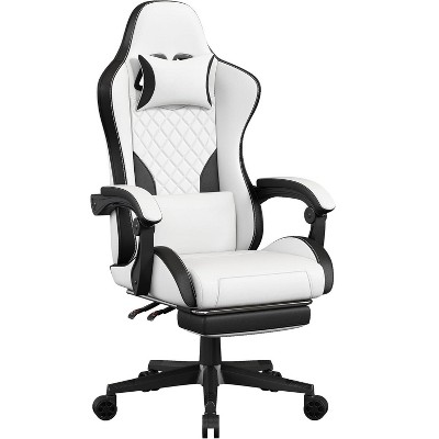 White Ergonomic Massage Gaming Chair with Footrest & Lumbar Support