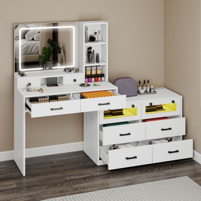 Vanity Desk w/Mirror & Lights Power Outlet and Stool Makeup Vanity Table