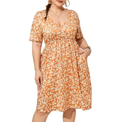 Women's V Neck A-Line Knee Length Wrap Swing Dresses Plus Size A Line Party Mini Dress