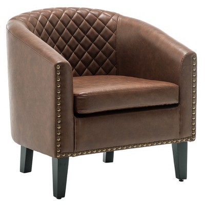 GDFStudio Cedric Mid-Century Modern Faux Leather Upholstered Single Sofa