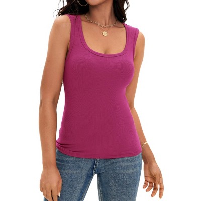 ATHLECHIC Women's Scoop Neck Ribbed Wide Strap Sleeveless Workout Basic Sport Tank Tops