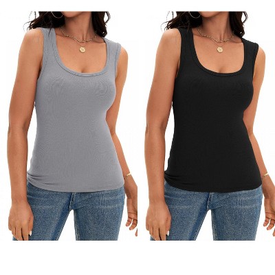 ATHLECHIC Women's Scoop Neck Ribbed Wide Strap Sleeveless Workout Basic Sport Tank Tops 2 Packs