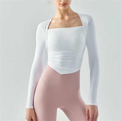 Clotth Women's Diagonal Neck Yoga Top - Long Sleeve Cap Thin String Tie Sport Top, Slimming Tight Fit Workout Top for Fitness