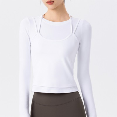 Clotth Women's Yoga Set - Round Neck Fitted Long Sleeve Yoga Top with Tank Top, Two-Piece Set for Pilates and Fitness