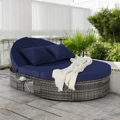 Costway 4PCS Patio Wicker Furniture Set Coffee Table Cushions w/ Cover