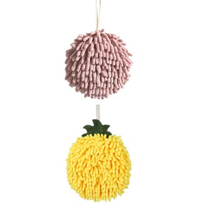 REGALWOVEN 2 Pack Soft Absorbent Chenille Fuzzy Ball Hand Towels for Bathroom Home Decor 6" x 6"